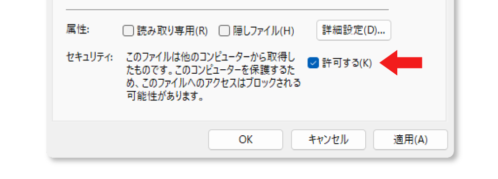 セキュリティ: このファイルは他のコンピューターから取得したものです。コンピューターを保護するためにブロックされる可能性があります。