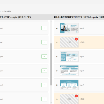 - 2つのPPTXファイルを左右に並べて同時スクロールで比較