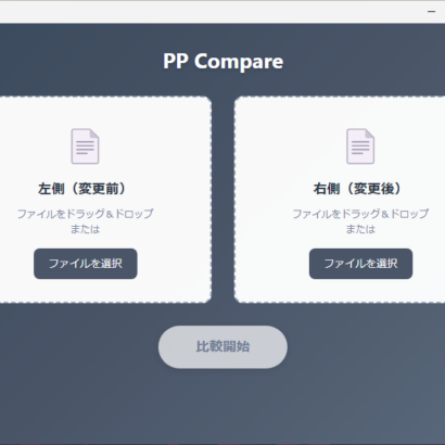 「PP Compare」は、2つのPowerPointファイルを左右に並べて表示し、変更箇所をハイライトで可視化。修正確認の効率を大幅に向上させるツールです。